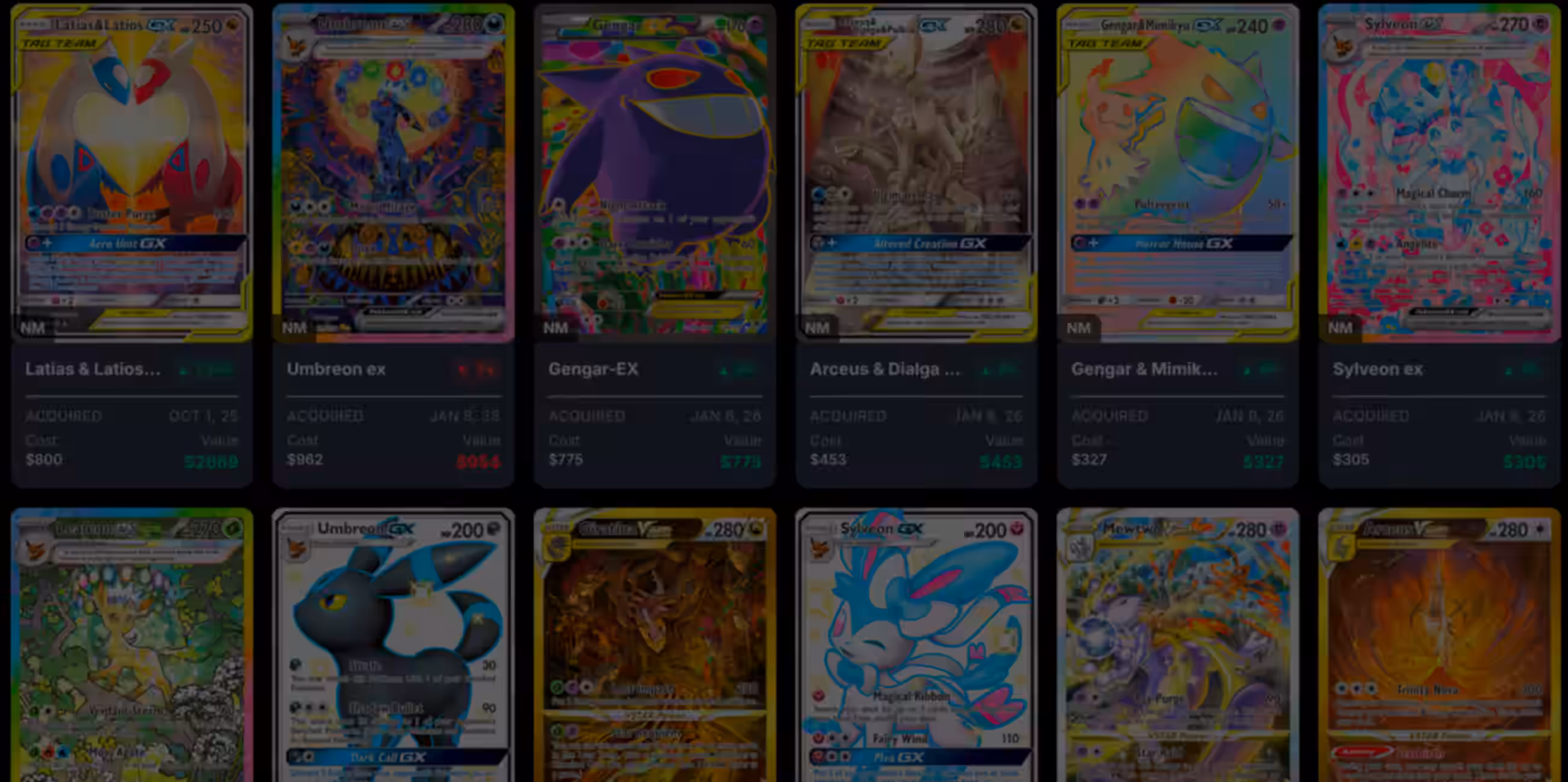 20,000+ cards with live pricing. Search, filter, and instantly add to your collection. No manual entry, no spreadsheets—just click and track.